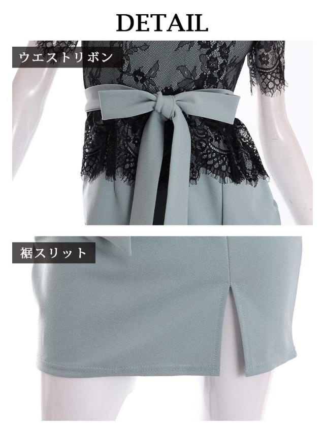 ☆【訳ありアウトレット】レース袖付ペプラムキャバクラミニドレスが登場!エレガントなバイカラーデザインで、大人セクシーな魅力を引き出します。