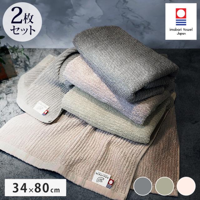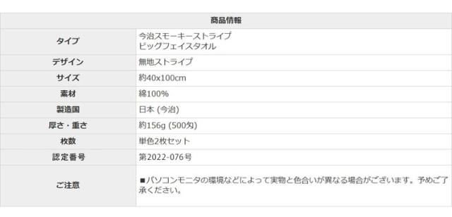 今治タオル ビッグフェイスタオル 2枚 中厚 40×100cm 綿100% 日本製 今治タオル スポーツタオル バスタオル 小さめ 無地 吸水 高品質 色落ち・毛羽落ちしにくい スモーキーストライプ(代引不可)