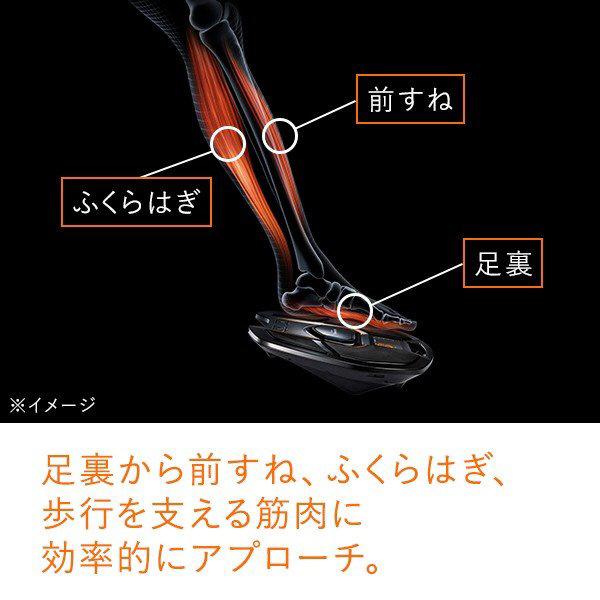 EMSトレーニング・ギア SIXPAD Foot Fitは、足裏からふくらはぎ、前すね、太ももを通り、左右の足を電気が行き来する通電方法を採用。