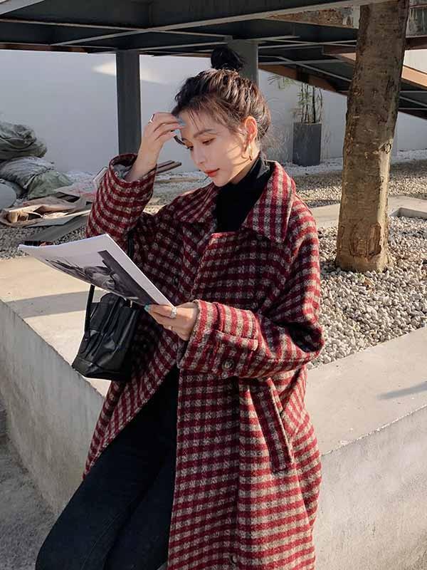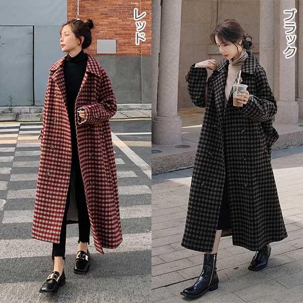 チェスターコート チェック柄 レディース ロングコート コクーンコート ドロップショルダー ロングチェスターコート 超ロング アウター 秋 冬 冬服 オーバーサイズ カジュアル あったか 暖かい きれいめ 大人可愛い 体型カバー コート 韓国 黒 ブラック 赤 レッド S M L 2L dd342n1n1cy