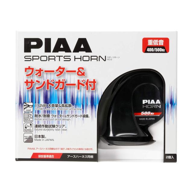 PIAA(ピア) ホーン 400Hz+500Hz スポーツホーン 112dB 2個入 渦巻き型 車検対応 アースハーネス同梱 HO-2