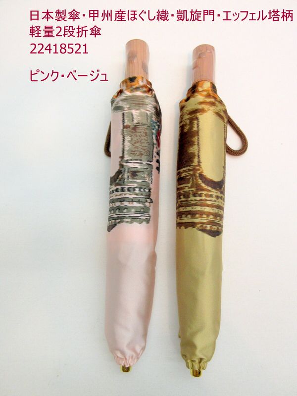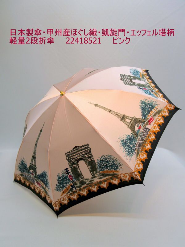 雨傘 傘 ファッション小物 レディースファッション 折畳傘 婦人 日本製傘 甲州産 ほぐし織 凱旋門 エッフェル塔柄 軽量 2段折傘 甲州 【送料無料】