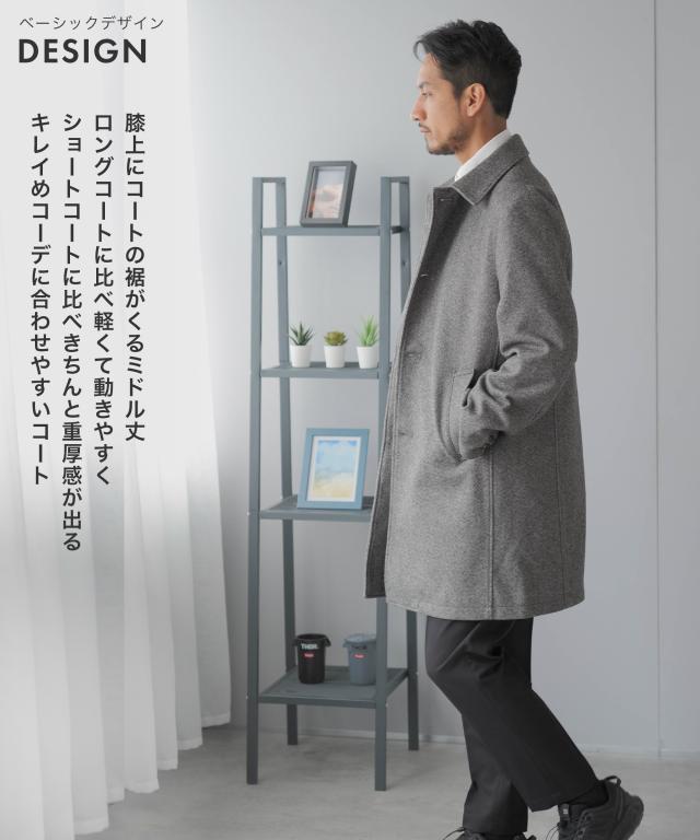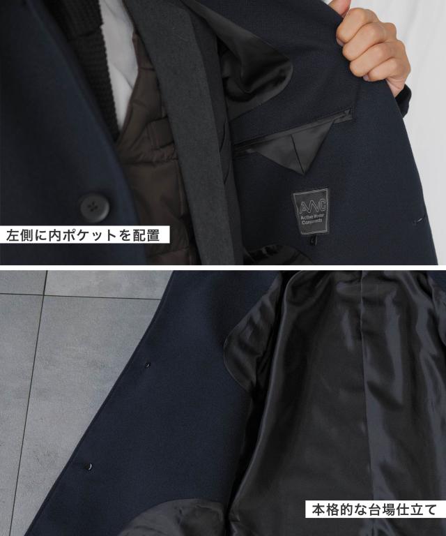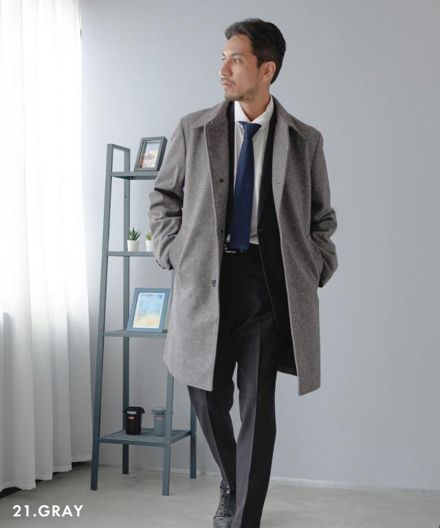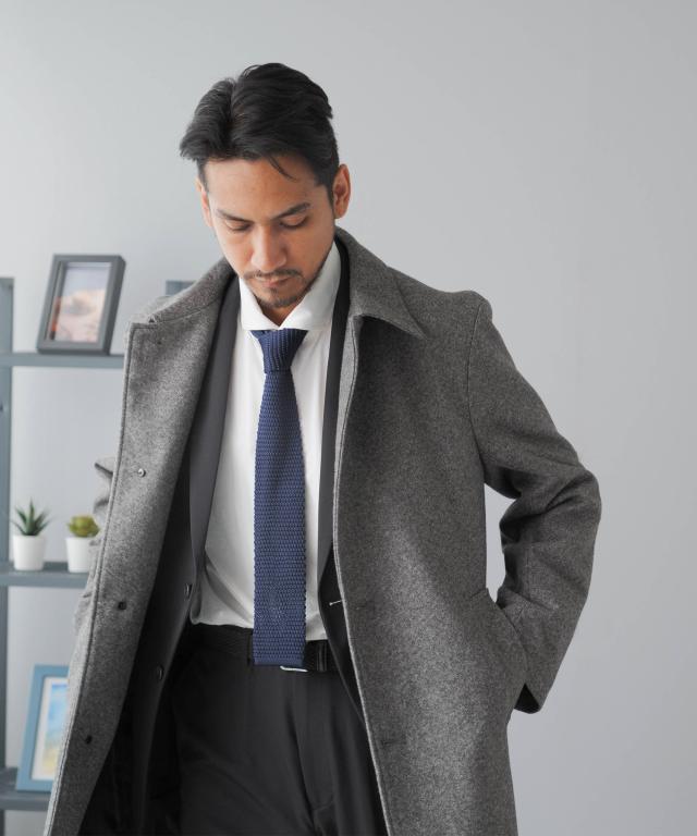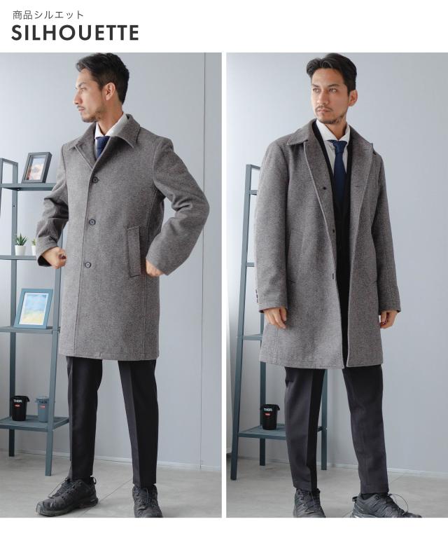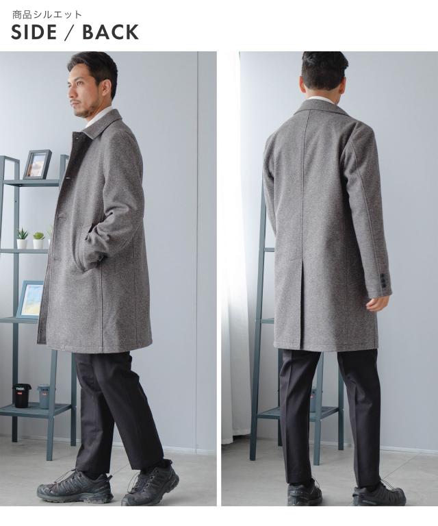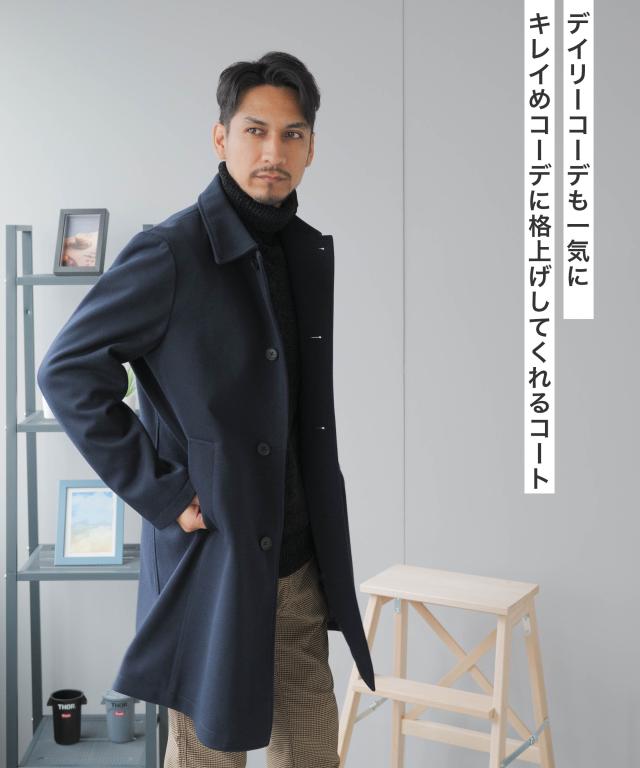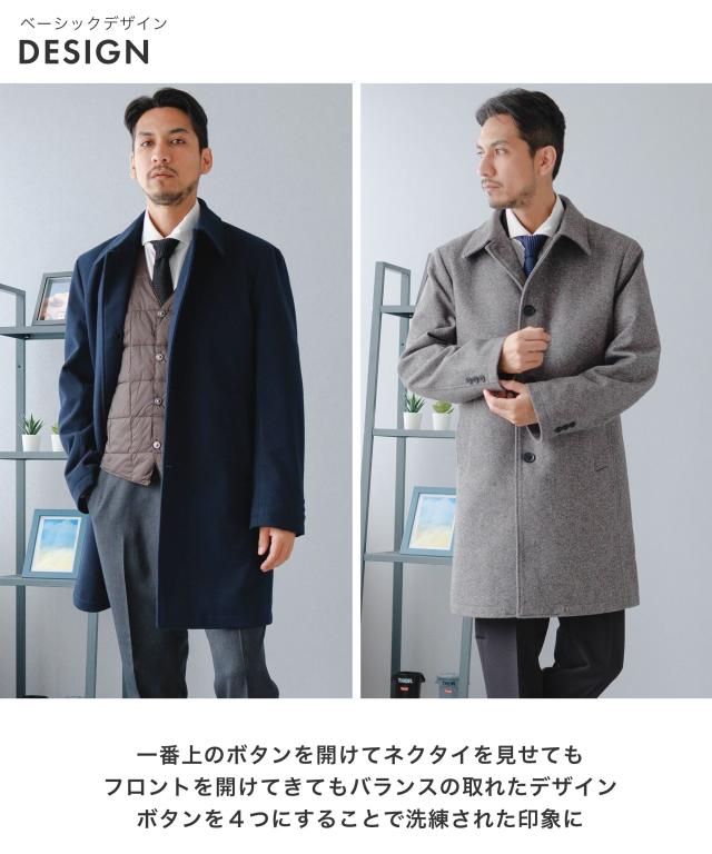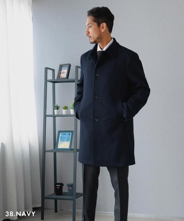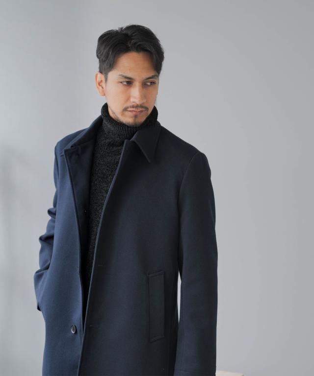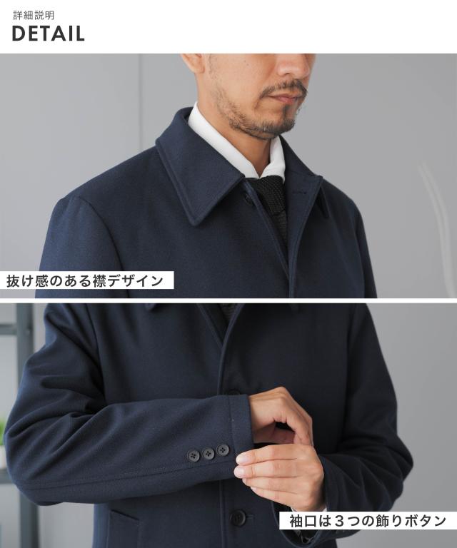 キーワード:メンズ 男性 アウター コート メルトン バルカラー ビジカジ ビジネスコート カジュアルコート 仕事 スラッシュポケット 内ポケット 台場仕立て センターベント 30代 40代 50代