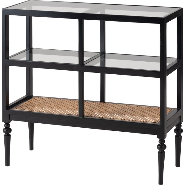 ナチュラル×クラシカルな雰囲気を演出する、木製オープンシェルフ キャビネット 幅80cm×奥行30cm×高さ75cmのブラックカラーで、強化ガラスを使用したインテリア家具 リビングに映える整理 収納 棚、オープンラック 黒 ナチュラル×クラシカルな雰囲気を演出する、木製オープンシェルフ キャビネット 幅80cm×奥行30cm×高さ75cmのブラックカラーで、強化ガラスを使用したインテリア家具 リビングに映える整理 収納 棚、オープンラック