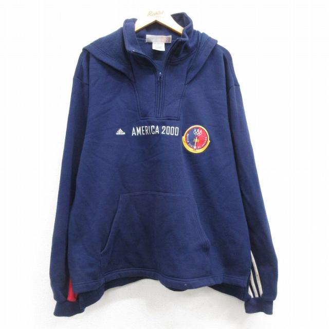 古着 アディダス adidas 長袖 ハーフジップ スウェット パーカー メンズ 00年代 00s USAオリンピック 刺繍 大きいサイズ 紺 ネ 中古 古着