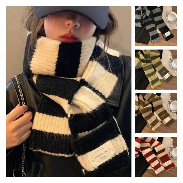 女性用マルチカラーストライプスカーフ ロングニットスカーフ ゴシックストリートウェア 韓国スタイルショール 原宿 y2k