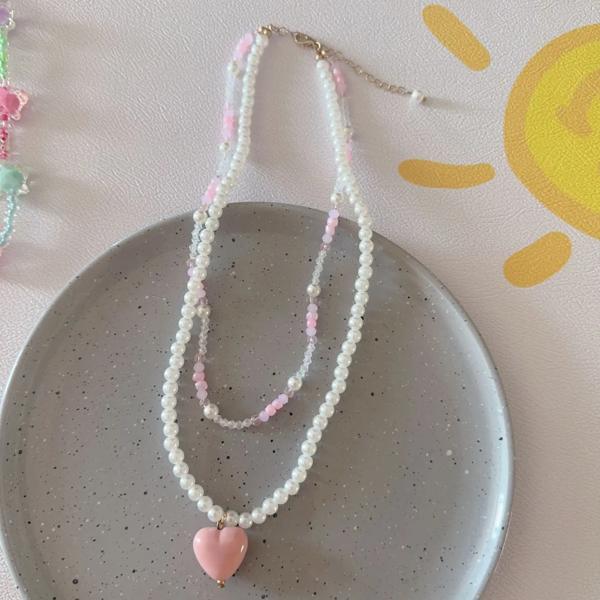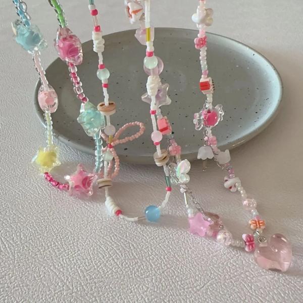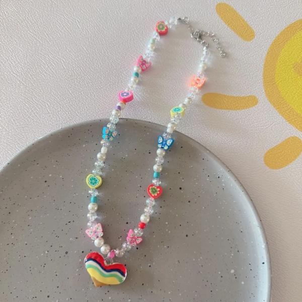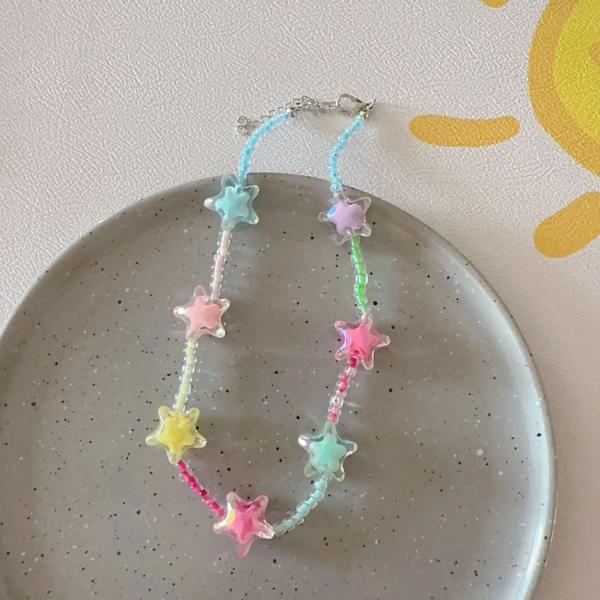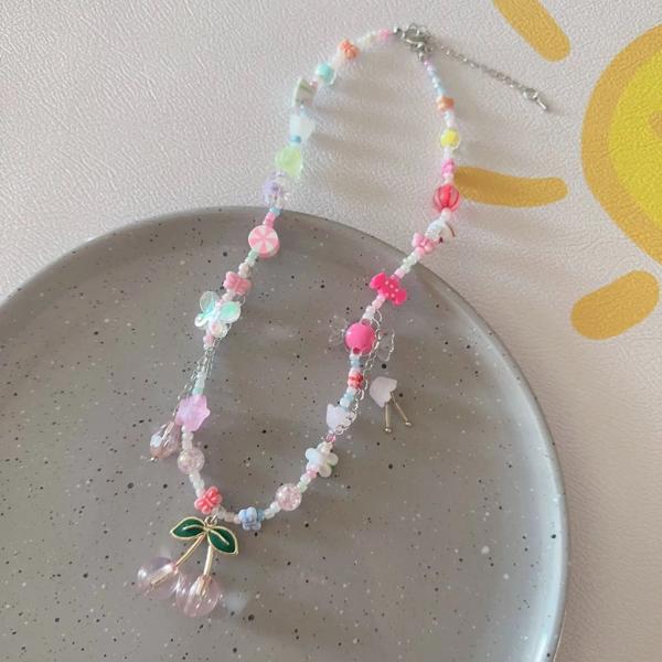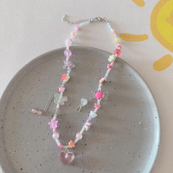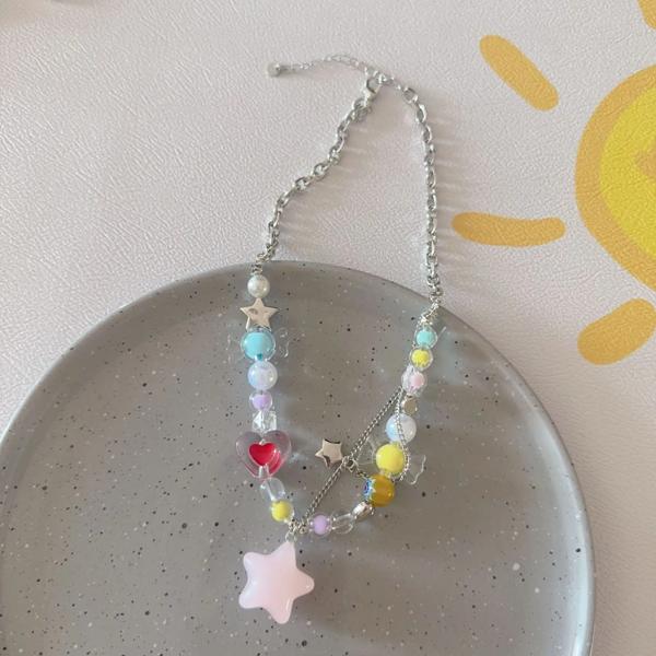女性と子供のためのy2kビーズネックレス イチゴ ハート チェリー スター ペンダント チョーカー ジュエリー かわいい 美的 2000s エモアクセサリー