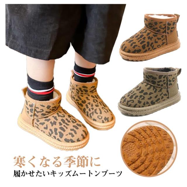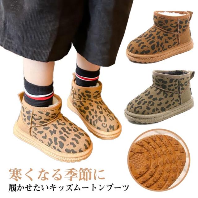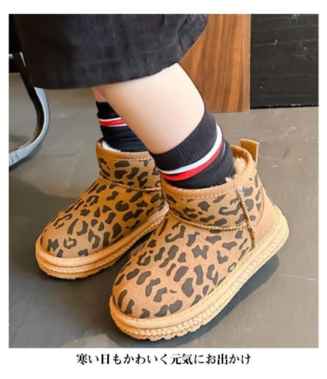 ムートンブーツ 滑り止め キッズ レオパード柄 スノーブーツ 防滑 スニーカー 子供用ブーツ 裏起毛ブーツ 裏ボア ジュニア 厚手 ボアブーツ 雪 冬靴 暖かい 痛くない スノー スノーブーツ 撥水 防寒 シューズ キッズ 冬 靴 小学生 子ども おしゃれ