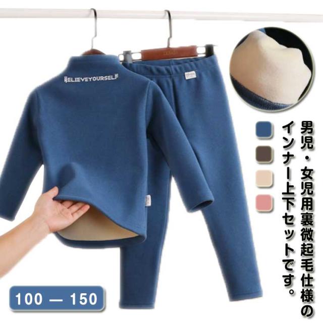 部屋着 裏起毛 パジャマ ルームウェア インナーパジャマ 裏ボア 子供パジャマ セットアップ ハイネック 秋冬 タートルネック ナイトウェア 上下セット 長袖 防寒 下着 インナーシャツ キッズ 子供服 長ズボン 女の子 男の子 かわいい 柔らかい 送料無料