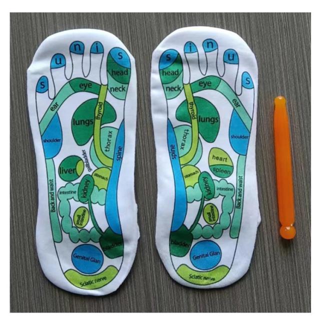 足 婦人 ソックス レディース ソックス クルー丈 ソックス1足 足 足底プリント 靴下 つぼペン付き つぼ 足つぼ ツボ押し 健康 美容 母の日 父の日 敬老の日 通年 オールシーズン プレゼント ギフト