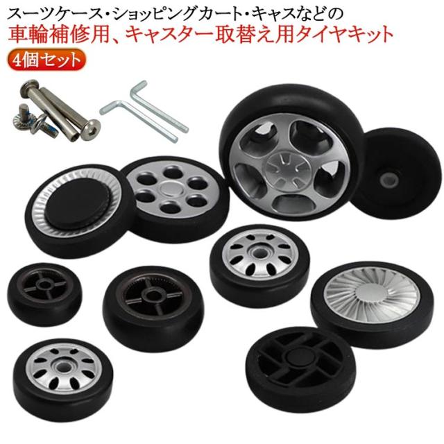 | 4個セット スーツケース・ショッピングカート・キャスなどの車輪補修用、キャスター取替え用タイヤキット。 | |