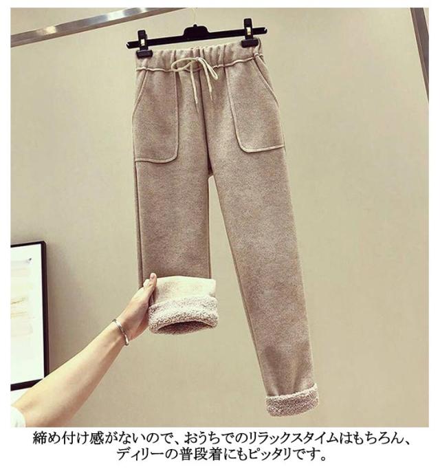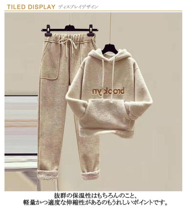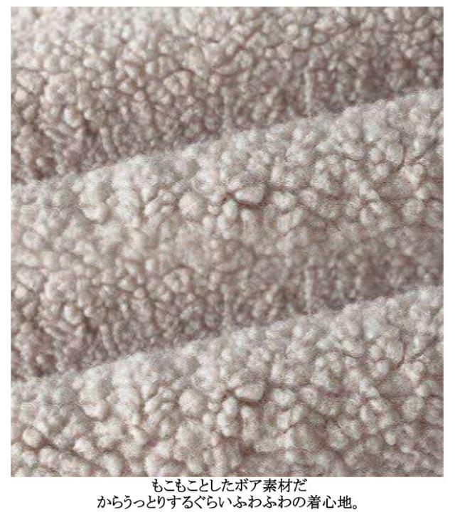 | 履いた瞬間、ポカポカと温かい上下2点セット。 抜群の保温性はもちろんのこと、軽量かつ適度な伸縮性があるのもうれしいポイントです。 もこもことしたボア素材だからうっとりするぐらいふわふわの着心地。 フロントの英字刺繍入りもおしゃれなポイント。 締め付け感がないので、おうちでのリラックスタイムはもちろん、ディリーの普段着にもピッタリです。 | |