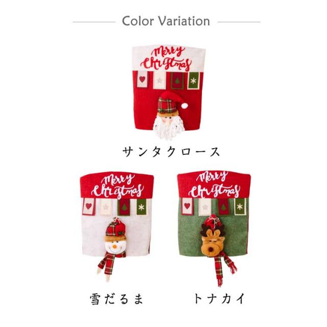 | クリスマス雰囲気の椅子背もたれカバー。 おしゃれ可愛いサンタクロースと雪だるまとトナカイの3タイプあります。 取り付け簡単でかぶるだけでお部屋の雰囲気に合わせて、よりクリスマスムードが豪華になりますね。 | |
