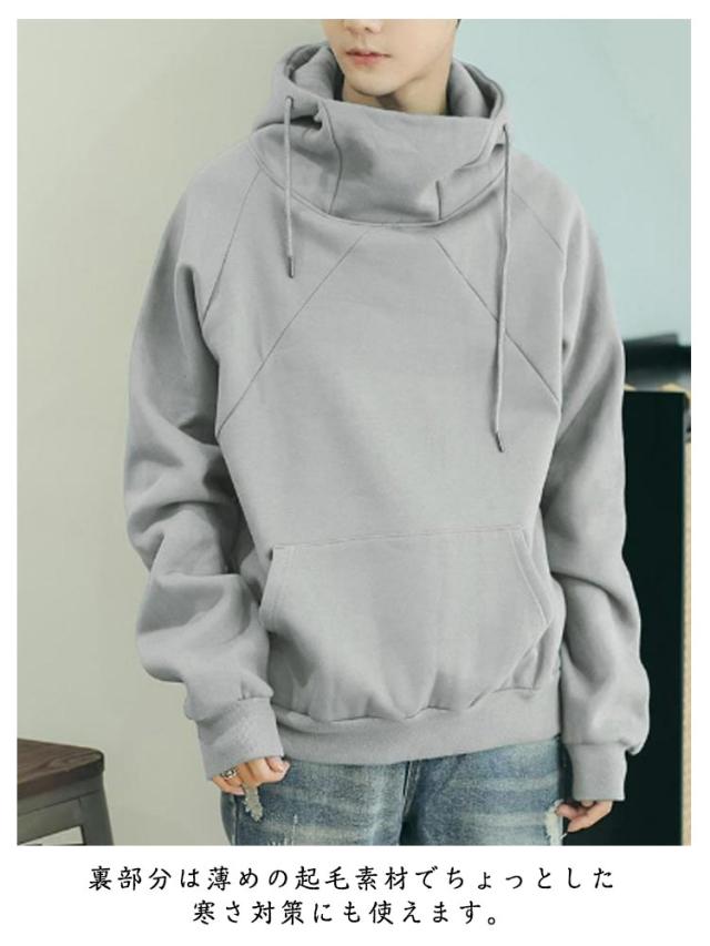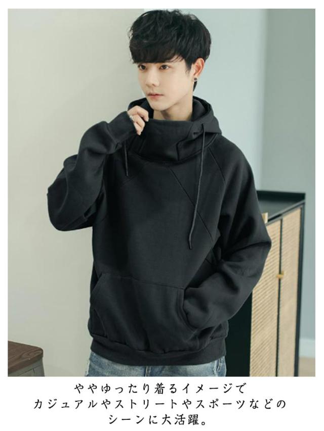 ボリュームネック パーカー メンズ ハイネックパーカー ボリュームネックパーカー 裏起毛 パーカー 無地 プルオーバー トップス スウエット 大きいサイズ フード付き カジュアル ストリート ゆったり 送料無料