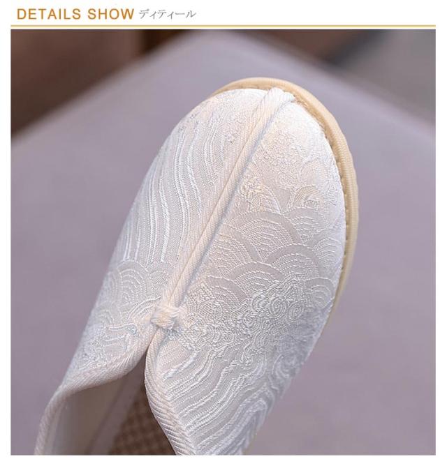 | チャイナ風の七五三の子供靴です。 軽くて柔らかい生地で履き心地抜群。 ソールは滑り止め加工が施されているので、滑りやすい路面でも安心。 長時間履いても疲れにくい。 ぺたんこだからとっても歩きやすい。 | |
