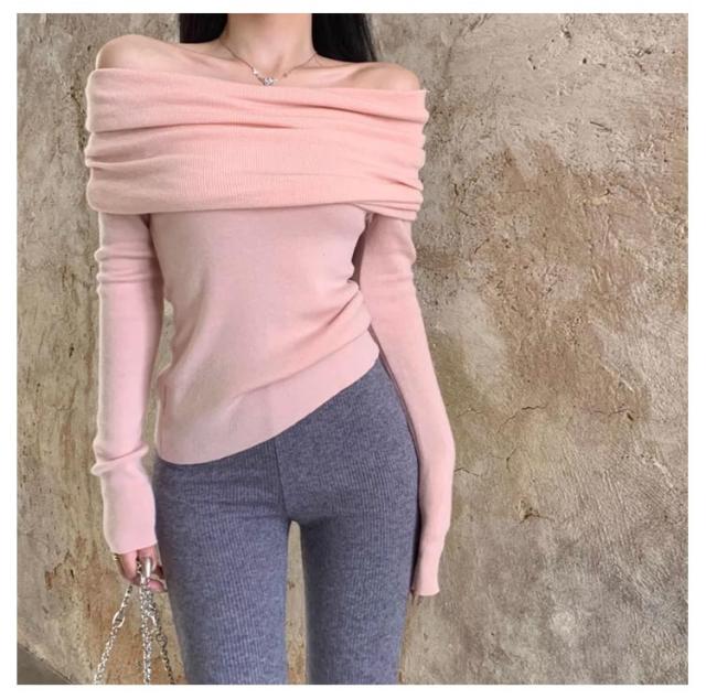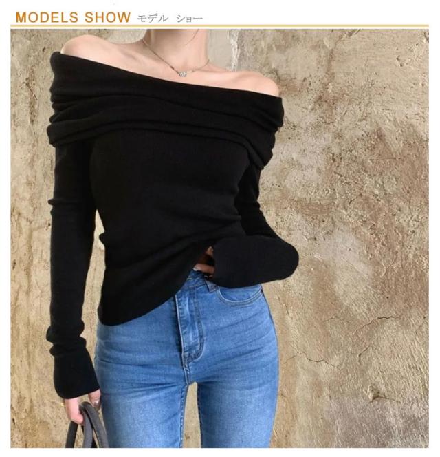 | 全8色 フェミニンな印象を演出するオフショルダーニットセーター | |