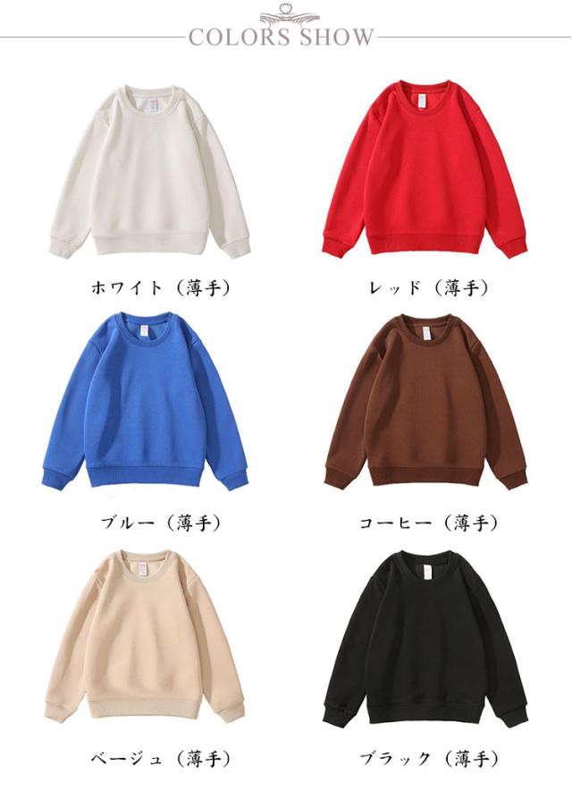 | 厚さ2タイプ選べる子供トレーナー 春秋冬三つの季節に適用します お遊戯会 学芸会 発表会に最適 男女兼用 キャラクター用衣装 無地トレーナー 素材はもちろん着心地の良い、きちんとした素材、きちんとした縫製にこだわり、催事後も普段使いにご利用頂きたくご用意致しました。 男女兼用、サイズも豊富にそろえましたので、安心してご利用下さい。 | |