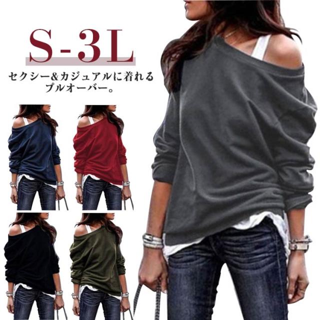 トップス オフショルダー 肩出し スウェット レディース プルオーバー カットソー 肩出し 長袖トレーナー トップス カットソー プルオーバー トレーナー 春秋 Tシャツ カジュアル 肩見せ 肌見せ 個性的 大きいサイズ