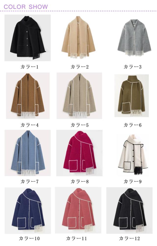 | レディースマフラー付きショート丈コートが新入荷! 全体的にゆとりのあるサイズ感で、中に厚手のインナーを合わせても◎ ショート丈で可愛らしく、どんなコーデにも合わせやすい一着です。 フェルトのような厚みのフェイクウール生地です。 暖かな肌触りで見た目よりも軽くて柔らかです。ご家庭でお洗濯ができてお手入れが簡単。 シンプルで着やすいけどお洒落感とユニークさも失わない秋冬ならではのアウター。 | |