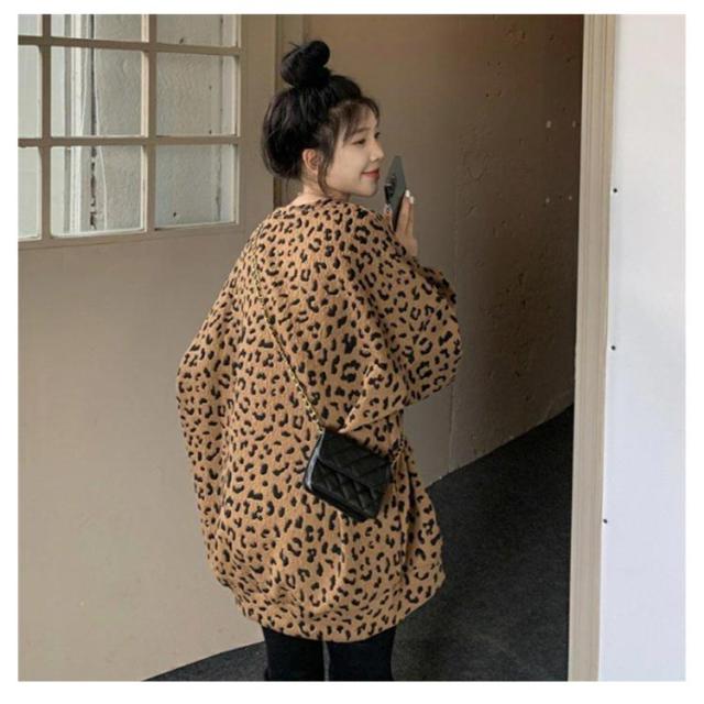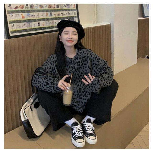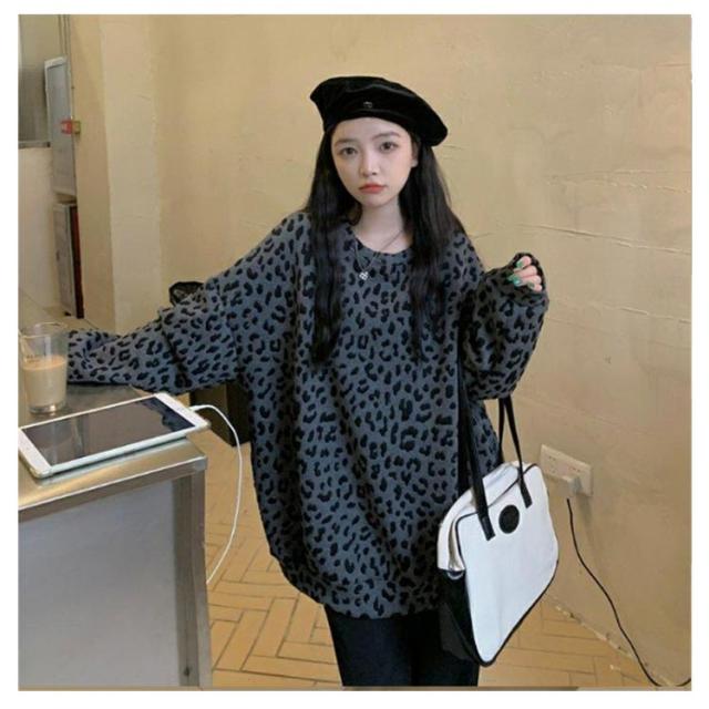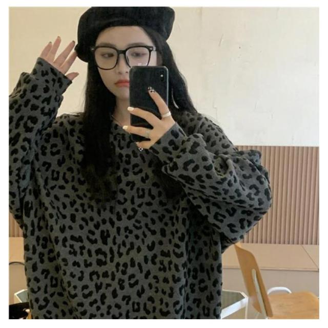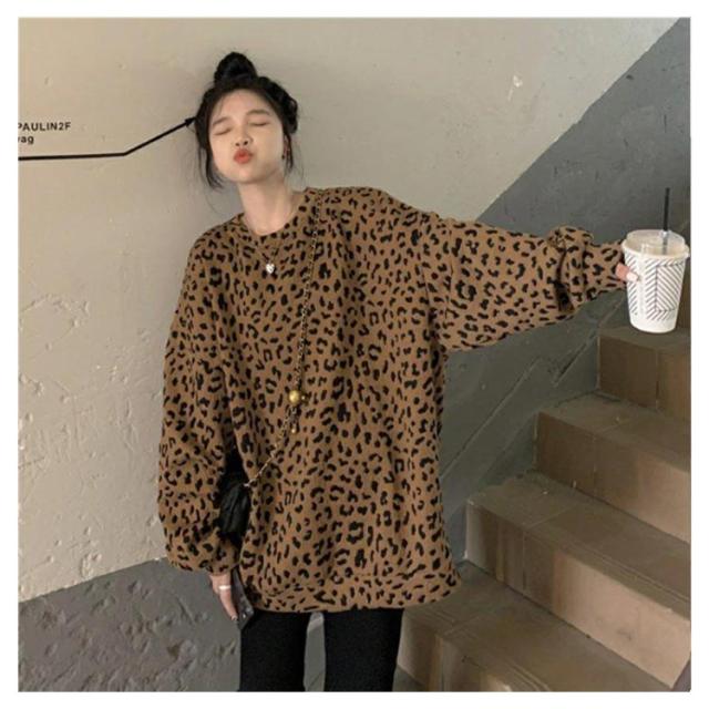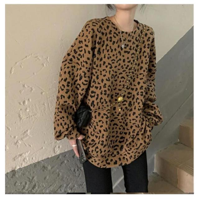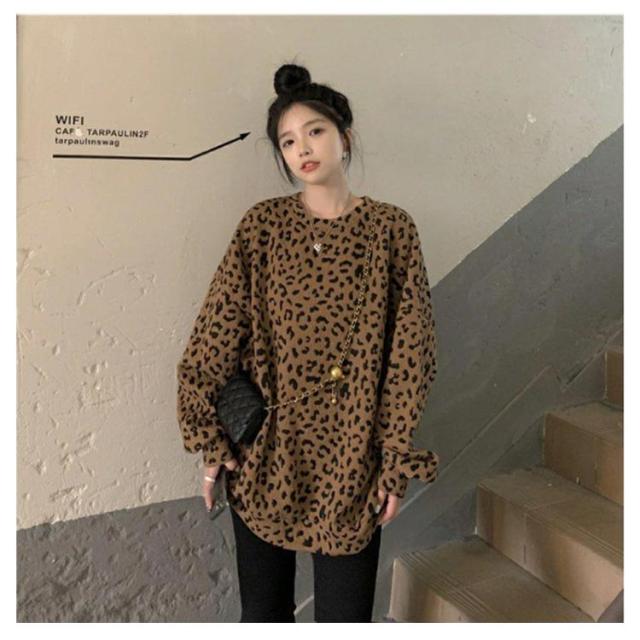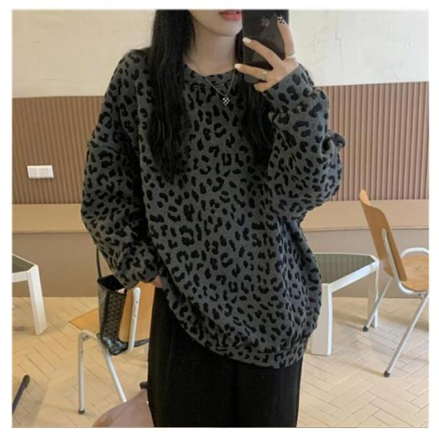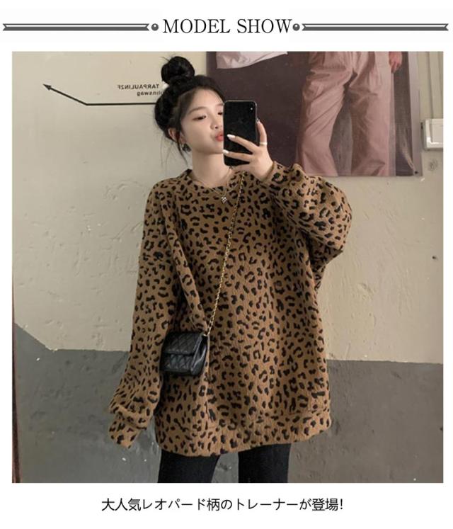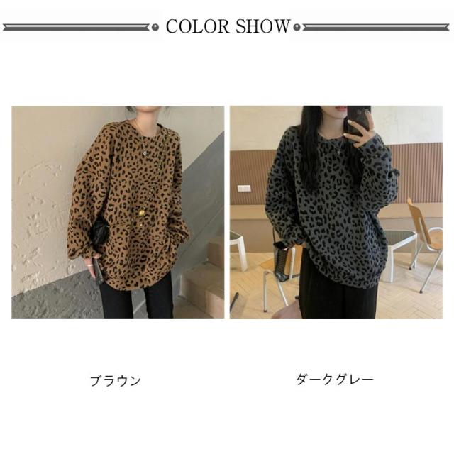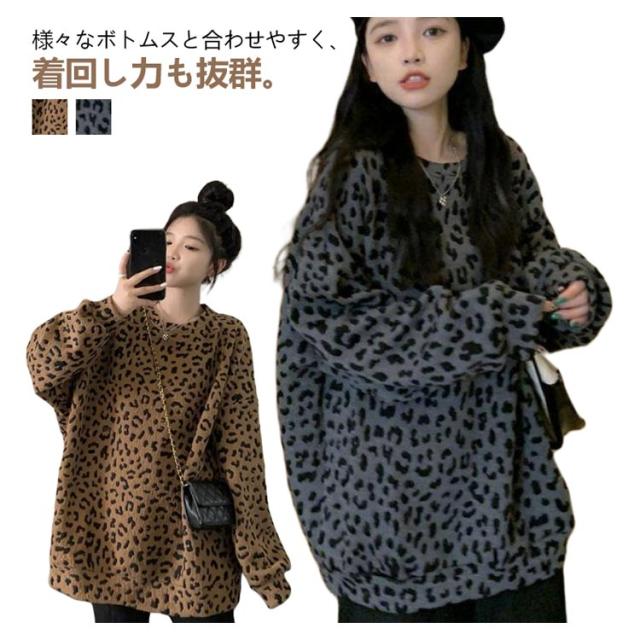 ヒョウ柄 レディース 長袖 ゆったり トレーナー レオパード柄 ファッション トップス カジュアル おしゃれ トレーナー 韓国 秋 冬