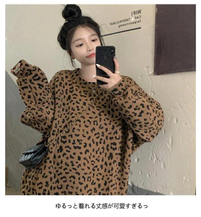 | 大人気レオパード柄のトレーナーが登場! ゆるっと着れる丈感が可愛すぎるっ♪ 様々なボトムスと合わせやすく、着回し力も抜群。 | |