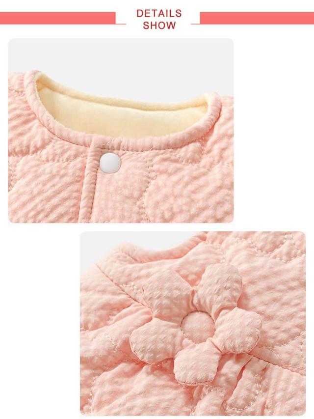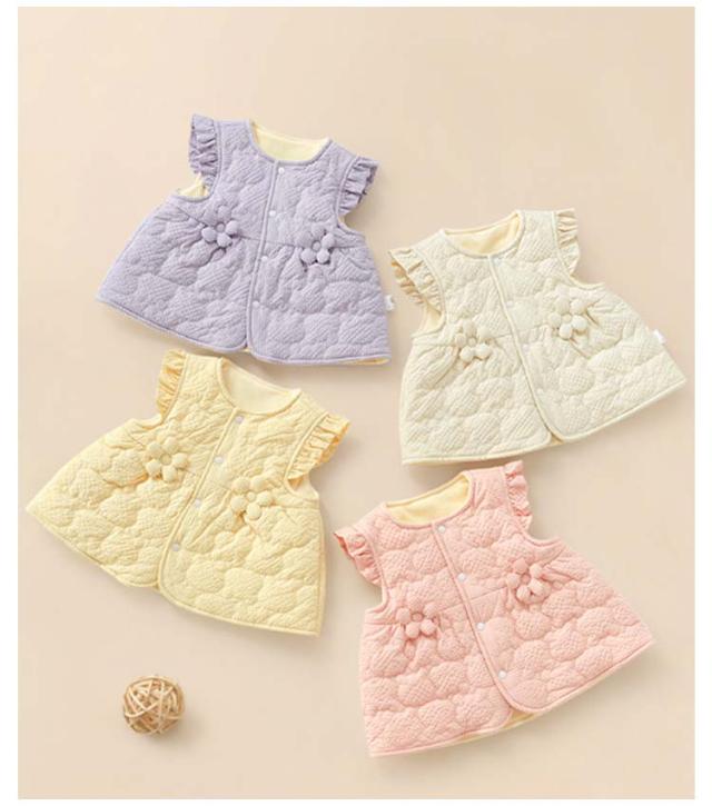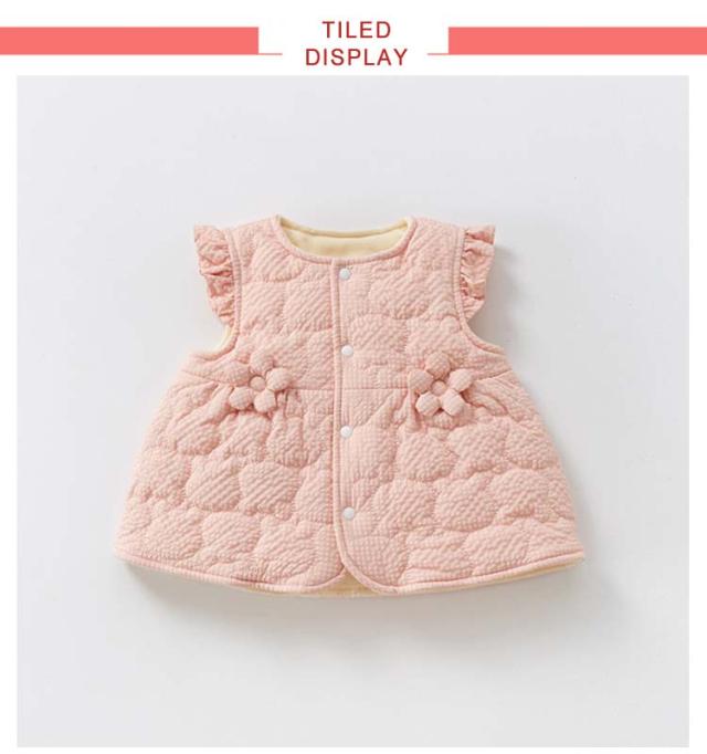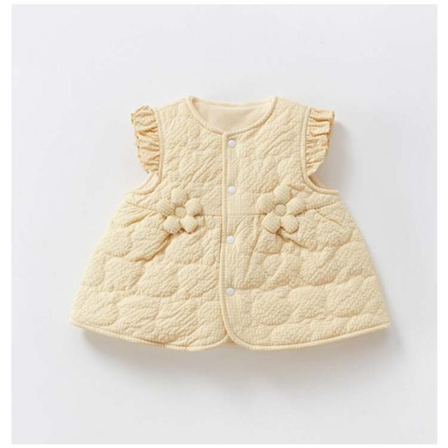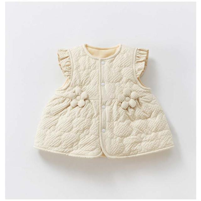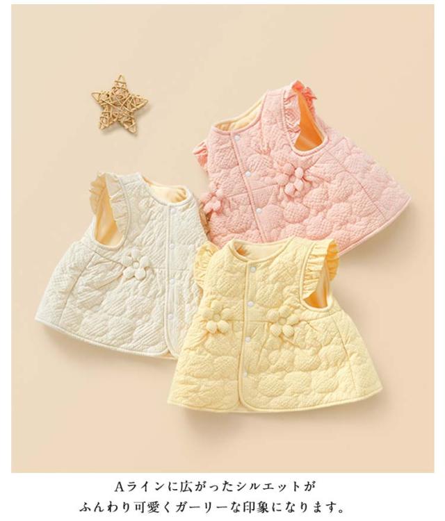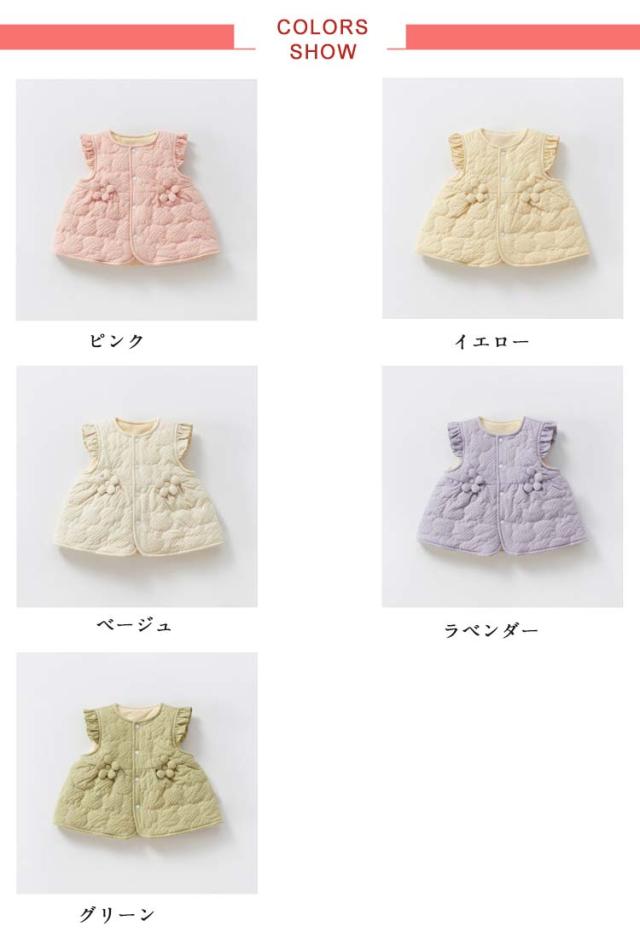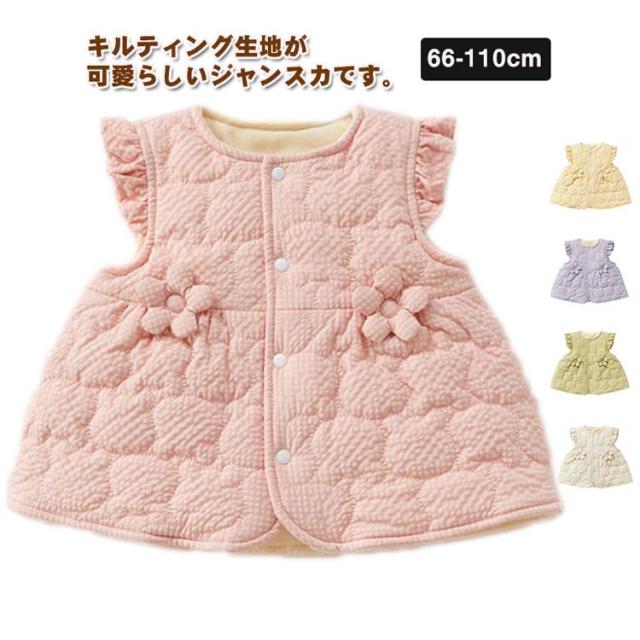 キルティング ジャンパースカート フリル ベビー服 中綿 ワンピース 前開き ノースリーブ ドレス ベビー服 裏起毛 ノーカラー 袖 厚手 暖かい 花柄 おしゃれ かわいい 秋