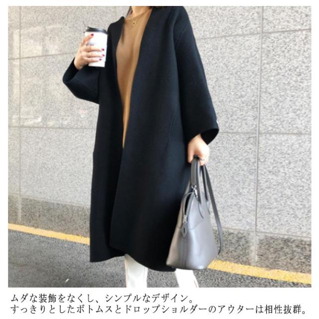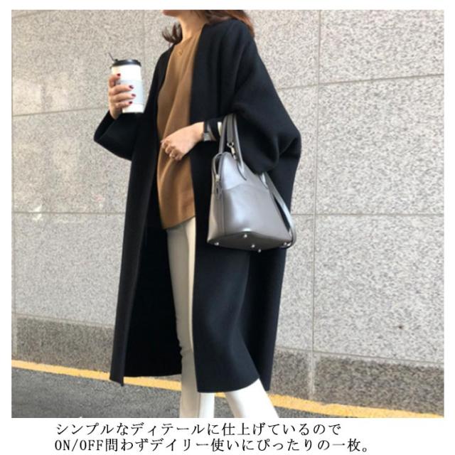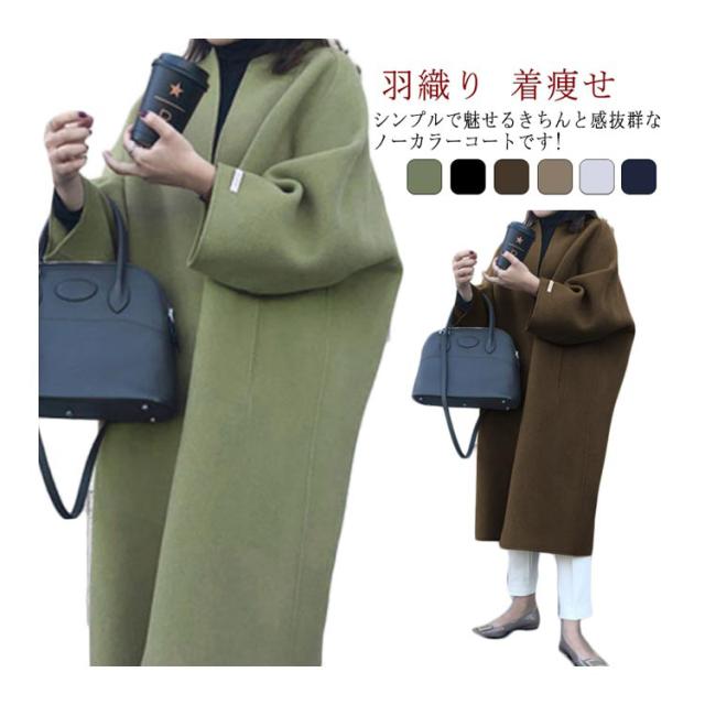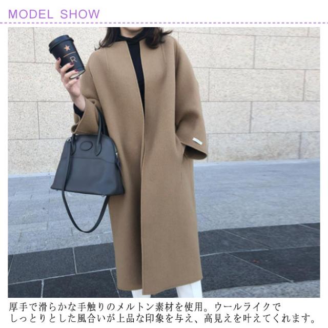 ロングコート ノーカラーコート レディース メルトンノーカラーコート ボタン ジャケット OL コート 羽織 チェスターコート クルーネック フェイクウール コート アウター ゆったり 無地 ロング ロングアウター 長袖 おしゃれ ノーカラーコート 通勤 着痩せ お洒落 上品