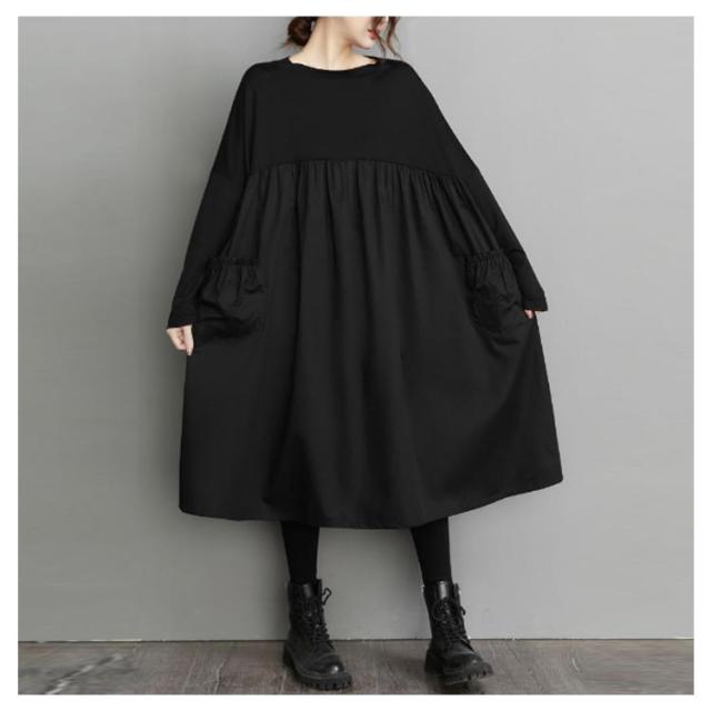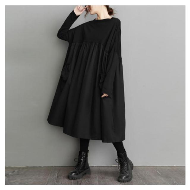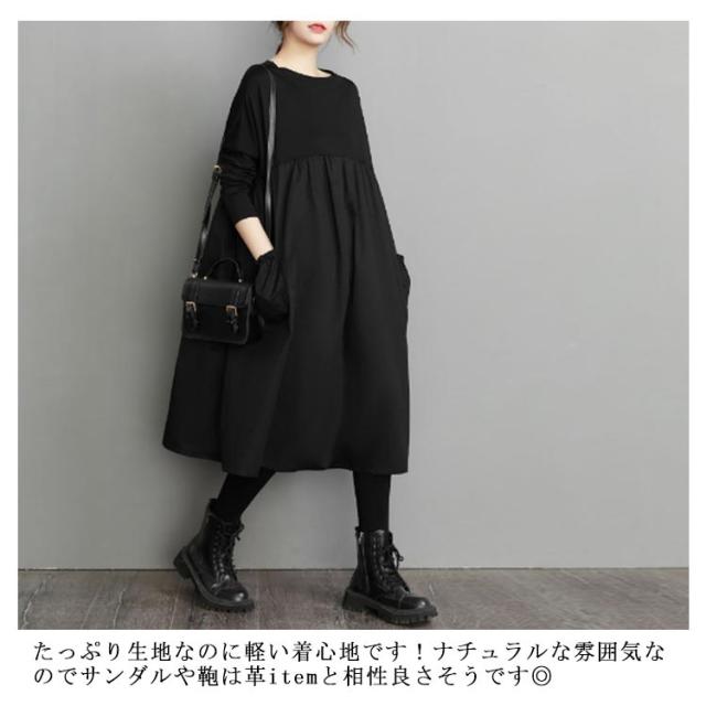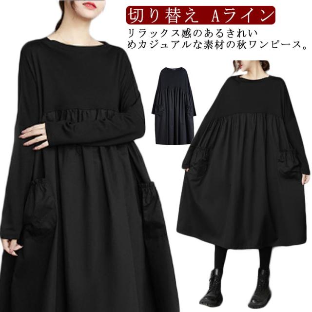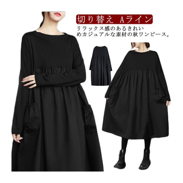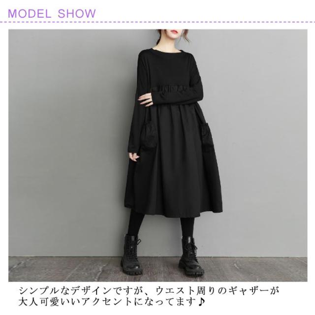 ドッキングワンピース 切り替え レデイーズ ワンピース ロングワンピース 着痩せ 大きいサイズ ゆったり 長袖 クルーネック ギャザー ルームウェア ドッキングワンピース ゆったり トレーナー マタニティ ワンマイルウェア Aライン