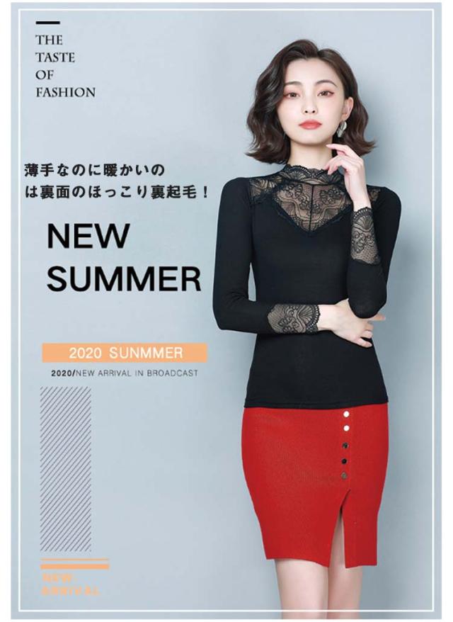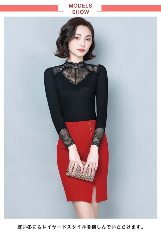 アンダーウェア レディース 裏起毛 重ね着 下着 肌着 レースインナー トップス あったかインナー カットソー 防寒 ハイネック 切り替え レースインナー シースルー シンプル 無地