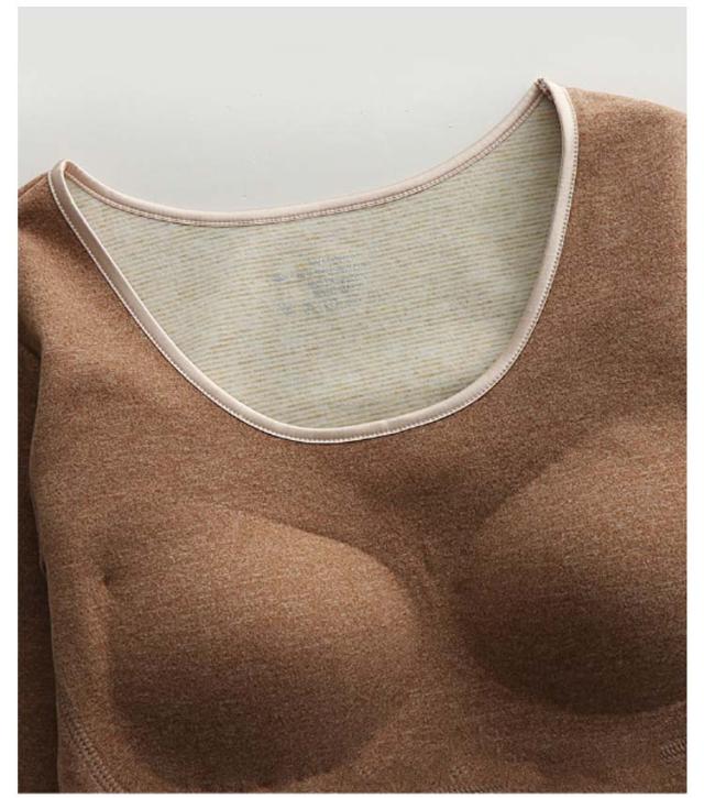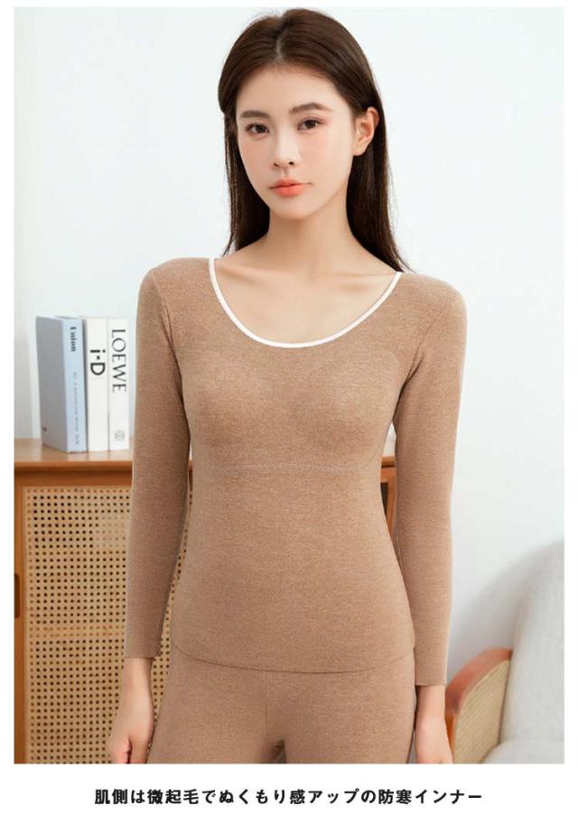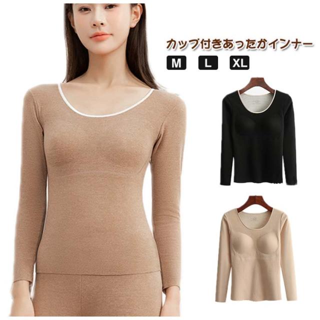 レディース ブラ内蔵長袖インナー トップス カップ付き インナー 両面起毛 肌着 インナーシャツ 下着 長袖 あったかインナー 防寒 ラウンドネック 保温 吸湿発熱 秋