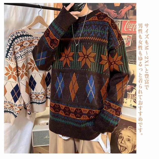 ニットセーター メンズ レディース 長袖 総柄 ノルディック柄 ニット セーター 春 秋 冬 レトロ ゆったり カップル カジュアル 秋冬 厚手 暖かい ニット トップス ゆったり 体型カバー シンプル 大きいサイズ かわいい 幾何柄 秋服 冬服 送料無料