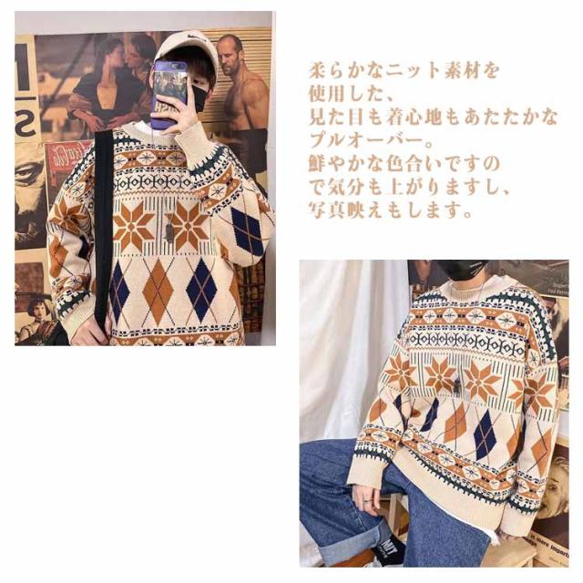 | 総柄で大人っぽく、カジュアルなアクセントをプラスするニットセーター。 ヴィンテージ感のあるデザインがパンツスタイルにもピッタリ合う1枚です。 ゆったりめですのでリラックスして着られます。 柔らかなニット素材を使用した、見た目も着心地もあたたかなプルオーバー。 鮮やかな色合いですので気分も上がりますし、写真映えもします。 サイズもM〜2XLと豊富で男性も女性もゆるっと着られておすすめです。 | |