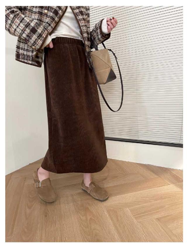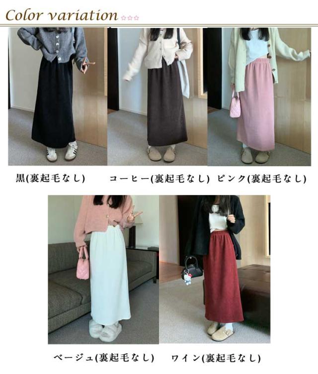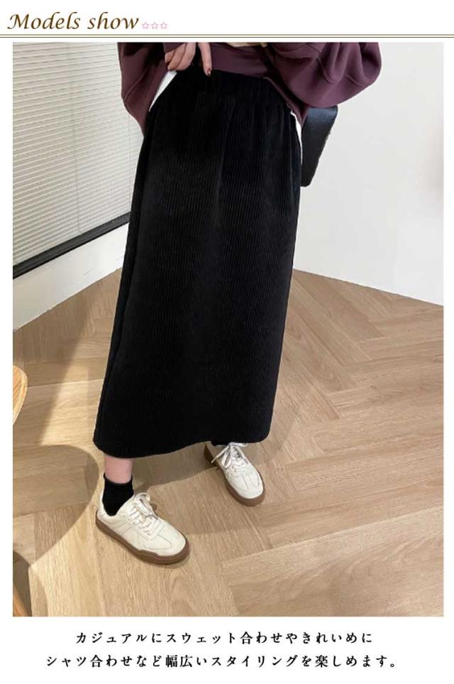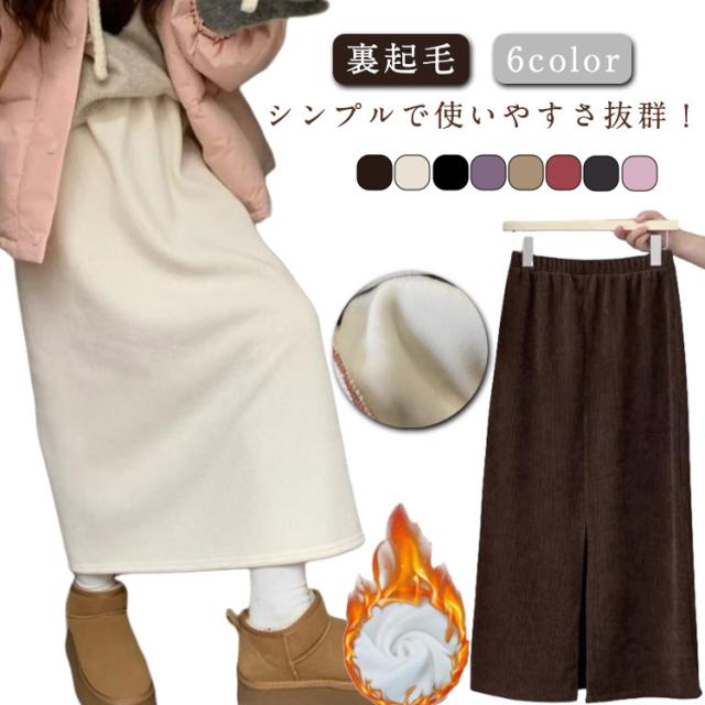 Aラインスカート 裏起毛 ロングスカート レディース 秋冬 スカート ナロースカート ロングスカート コーデュロイ ウエストゴム ボトムス 暖かい バックスリット ロング丈 マキシ丈 カジュアル 体型カバー 防寒