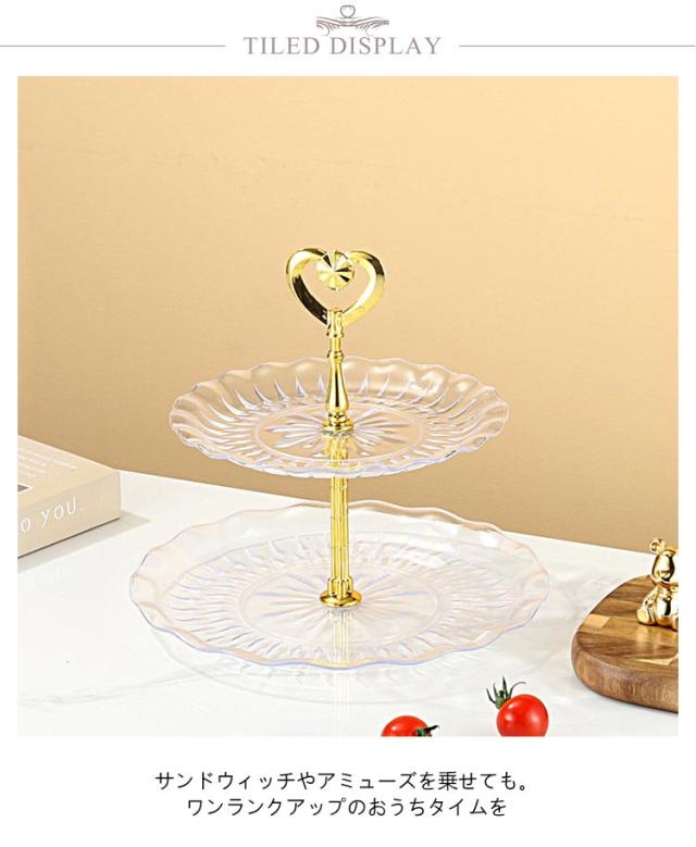 ケーキスタンド 2段 食器 アフタヌーンティースタンド ハートのハンドル アフタヌーンティー ケーキスタンド 2段 ケーキ皿 ティーセット cake stand 観覧車 デザートプレート お皿収納 プレートスタンド デザートプレート