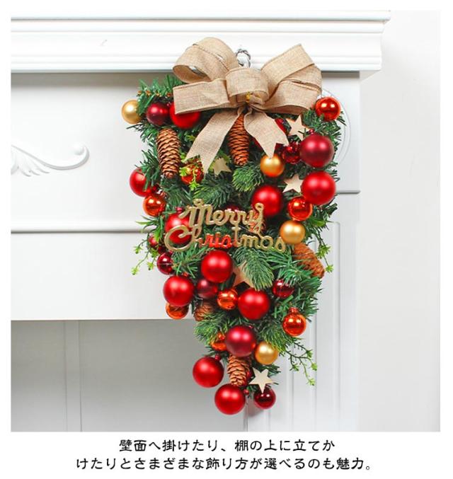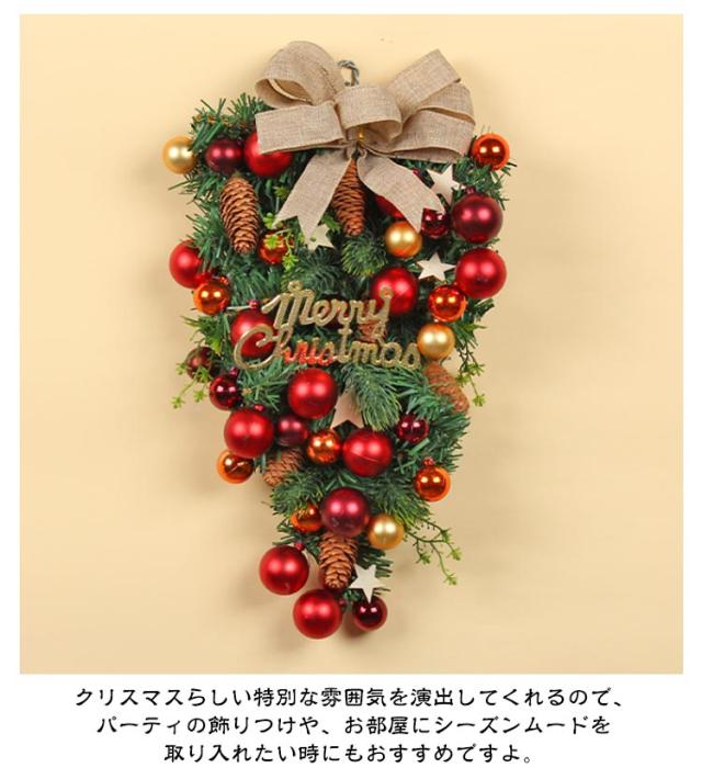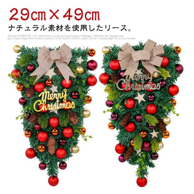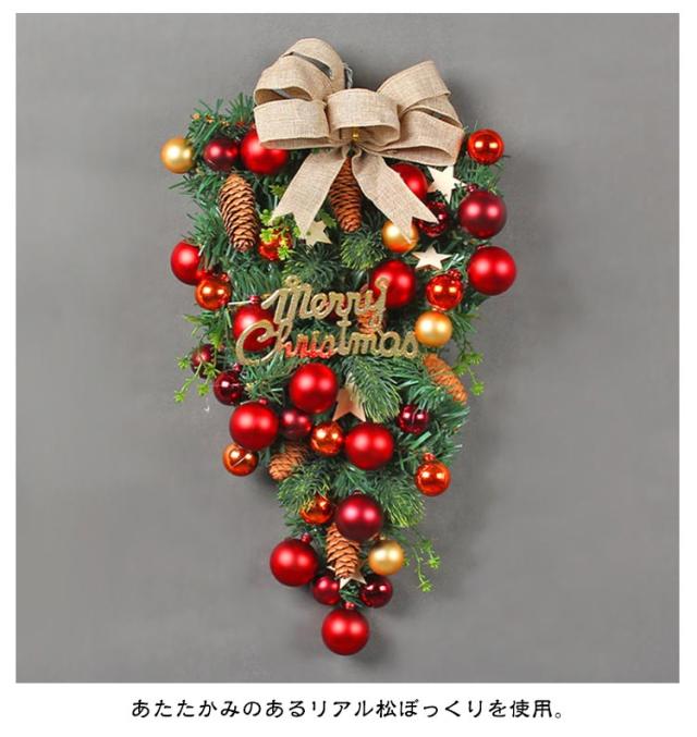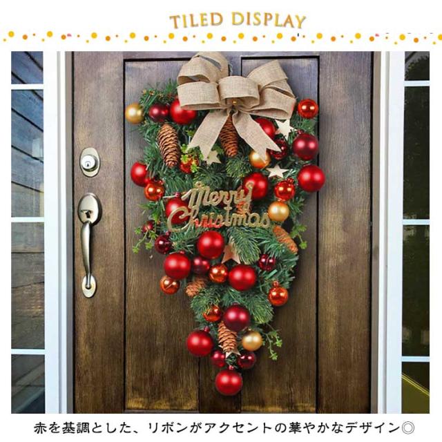 屋外 クリスマス 特大 ウォールツリー 50cm リース 飾り クリスマスリース 玄関 ドア 2024 大きい リース リボン ハンギングツリー 松ぼっくり 赤 クリスマスリース ボール ドア掛け 壁飾り 壁掛け レッド リース 豪華 クリスマス プレゼント ギフト