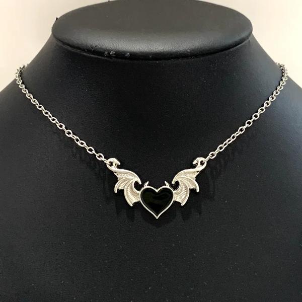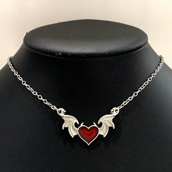 ゴシックデビルズハートエナメル桃の悪魔の翼ネックレスガールフレンドゴシックジュエリーのロマンチックなバレンタインデーギフト