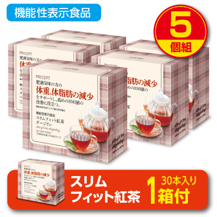 期間限定特価+1個付 スリムフィット紅茶ダージリン 機能性表示食品 30本 30日分 5個組 送料無料 体重 体脂肪 血中中性脂肪 内臓脂肪 ウエスト周囲径 ざくろ由来エラグ酸 ザクロ オリゴ糖 ダイエット紅茶 ティー 健康食品 サプリ