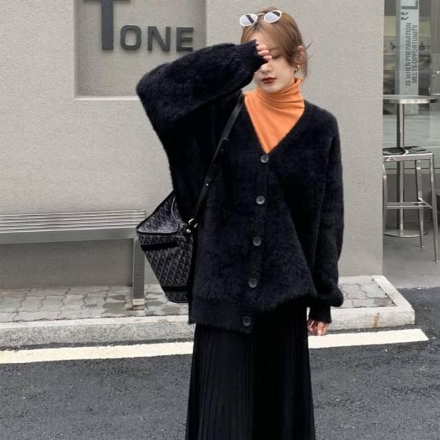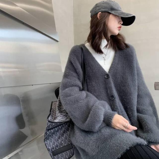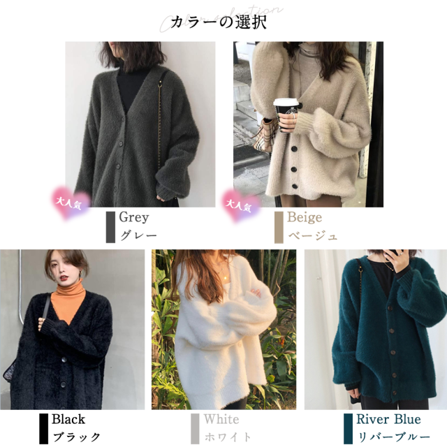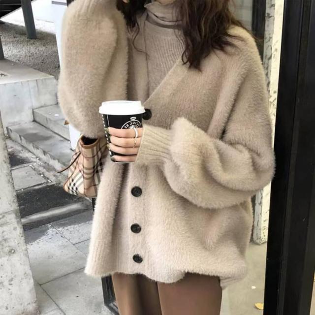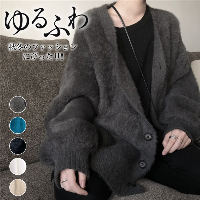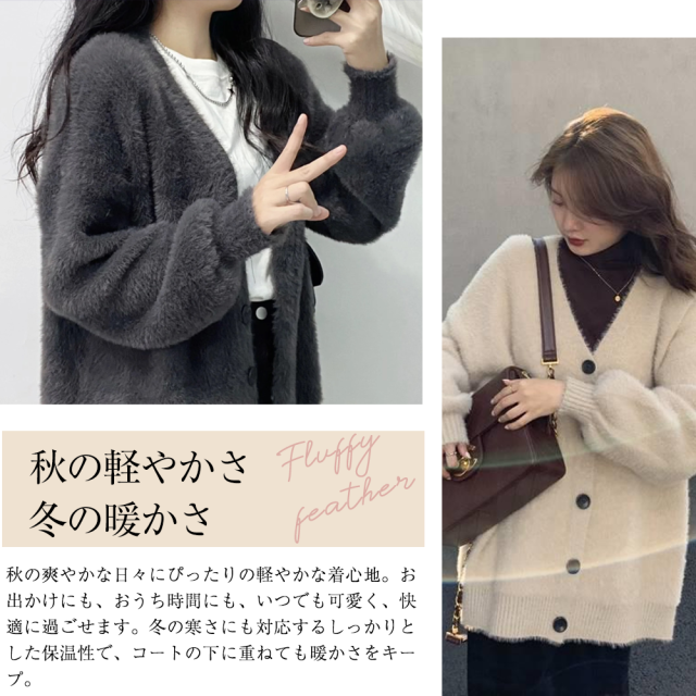 2025新作 カーディガン ジャケット レディース ニット Vネック シャギーニット トップス ニットコート フェザーカーディガン ニットカーデ ゆるニット 体型カバー プルオーバー