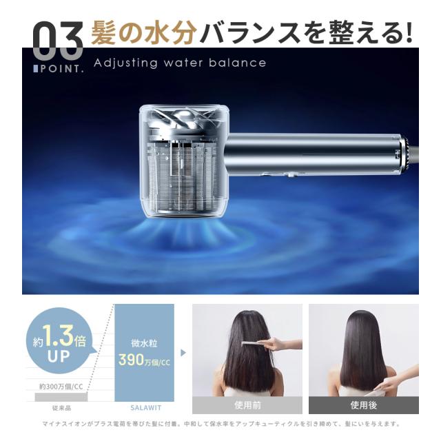 マイナスイオンは大気中に存在する負の電荷を帯びた分子の集合体です。その効能としてヘアドライヤーに使えば、髪の毛に浄化、脱臭、除菌、潤うを長持ちなどの作用がある。
