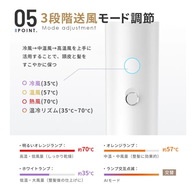 3段階風量調節+最新AIモード、用途に合わせて選ぶことができます!