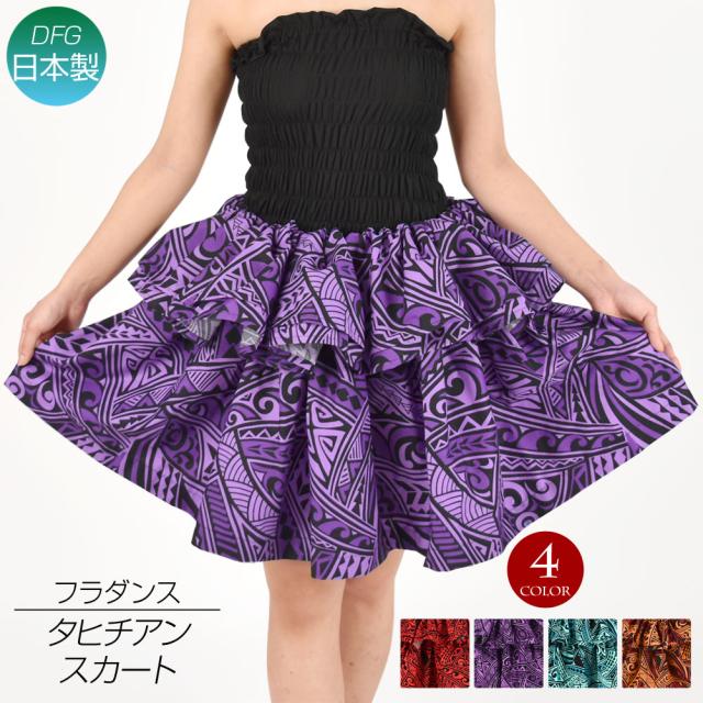 フラダンス衣装 日本製 タヒチアンスカート 2段フリル フラダンス CC24A56[新品]タヒチアン ハワイアン スカート ダンスレッスン着 練習着 総柄 フラ の スカート