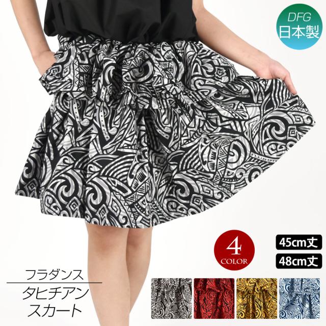 フラダンス衣装 日本製 タヒチアンスカート 2段フリル フラダンス タヒチアン CC24Z45[新品] ハワイアン スカート ダンスレッスン着 練習着 総柄 フラ の スカート