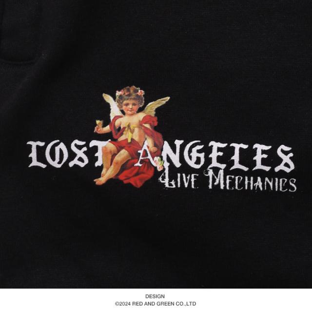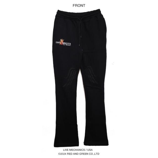 天使のグラフィックと共に、「LOST ANGELS」をドロップしたフレアタイプのスウェットロングパンツ。