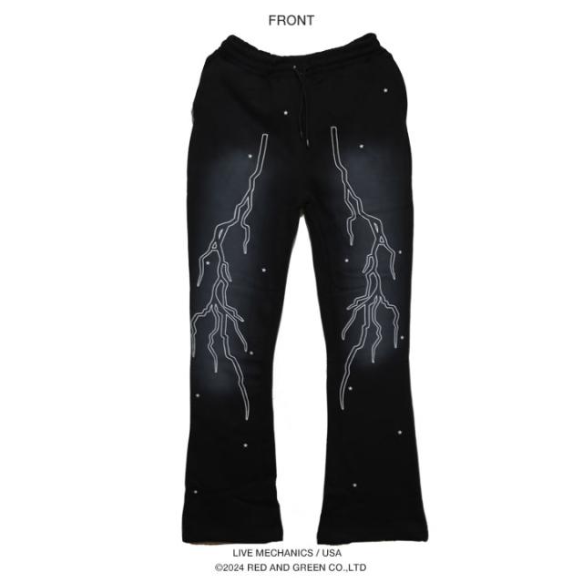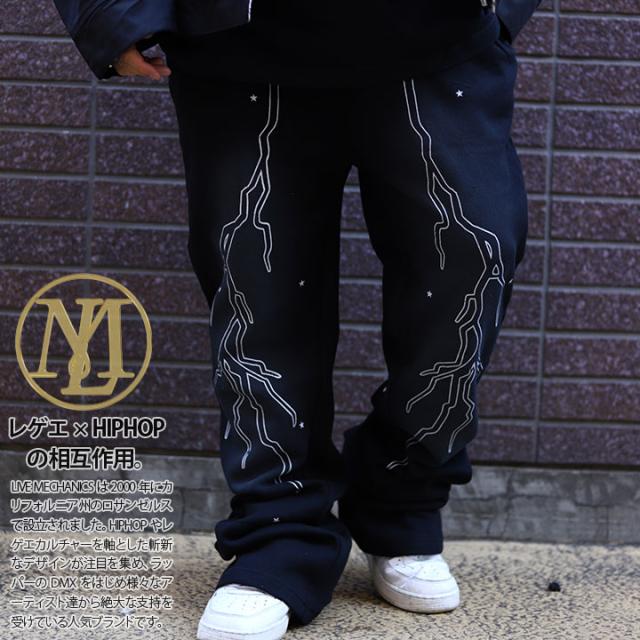 LIVE MECHANICS スウェットパンツ 裏起毛 フレアパンツ ベルボトム フレアー ブーツカット メンズ 春秋冬用 黒 大きいサイズ ライブメカニクス ロングパンツ 総柄 ラッパズボン b系 ヒップホップ ファッション ストリート系 ハイ ブランド 新作 THUNDERP1