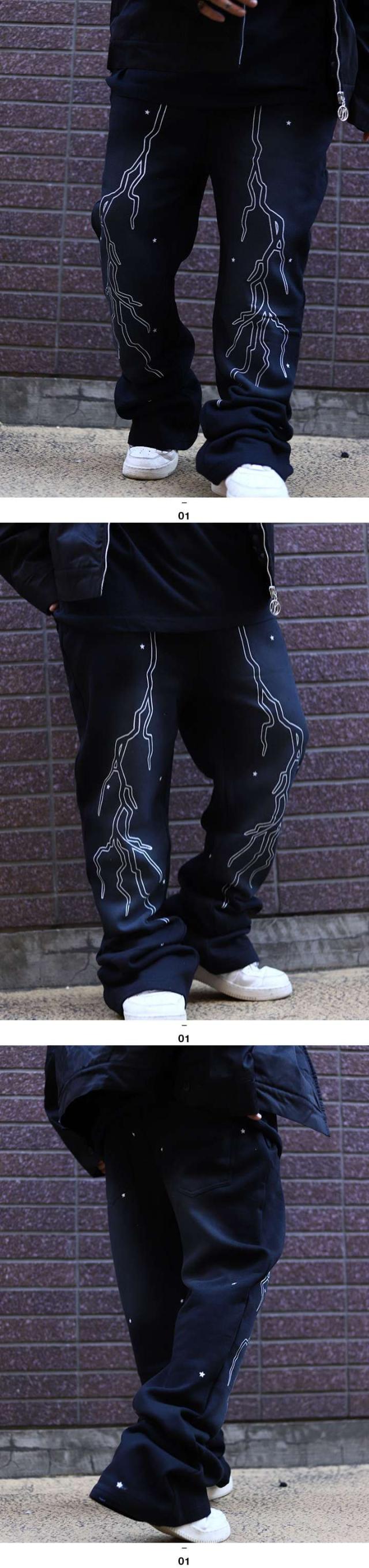 送料無料 L-2XL ゆったり おしゃれ かっこいい シンプル 雷 星 スター ビッグシルエット オーバーサイズ バギーパンツ スキニー スリム ひげ 陰影 アタリ サンダーボルト レゲエ