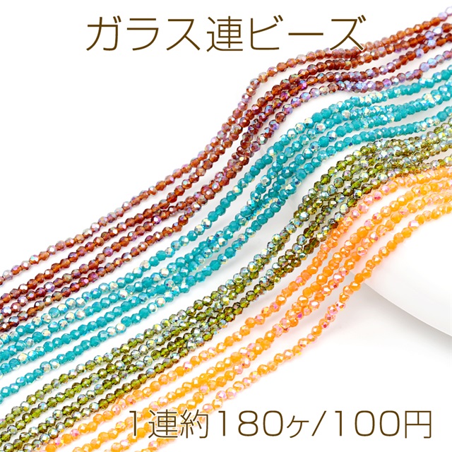 ガラス連ビーズ 2mm 極小ビーズ ガラスラウンドカットビーズ オーロラ加工 全8色 通し穴あり 約2mm (1連約180ヶ)
