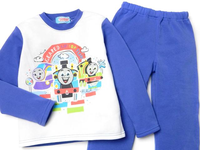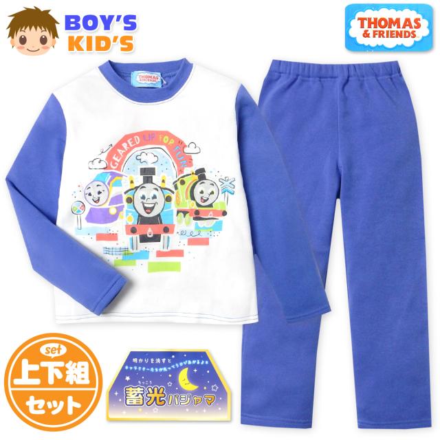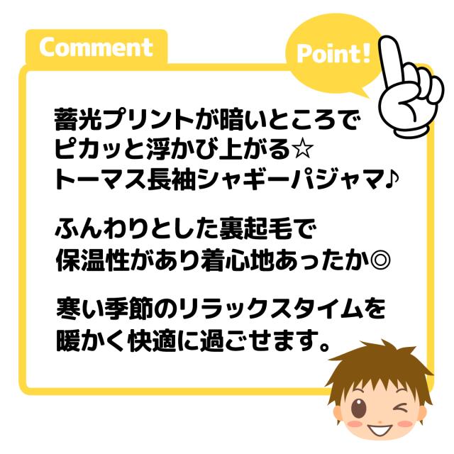 【送料無料】男児 キッズ 裏起毛 長袖 光るパジャマ きかんしゃトーマス 上下組 あったか素材 保温性 蓄光プリント 子供服 男の子 100cm 110cm 120cm 130cm td-0850【メール便対応】