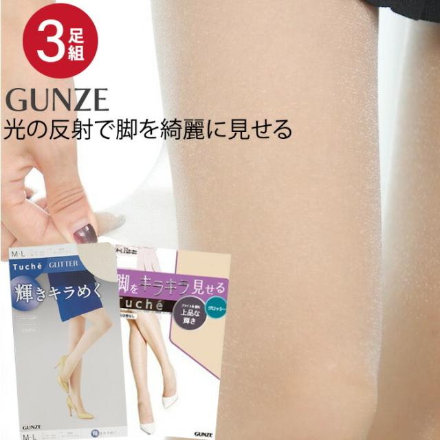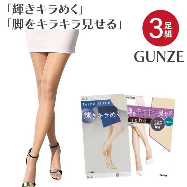 グンゼTucheの「脚をキラキラ見せる」と「輝きキラめく」 2種類のストッキングの3足セットです。