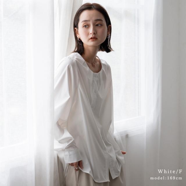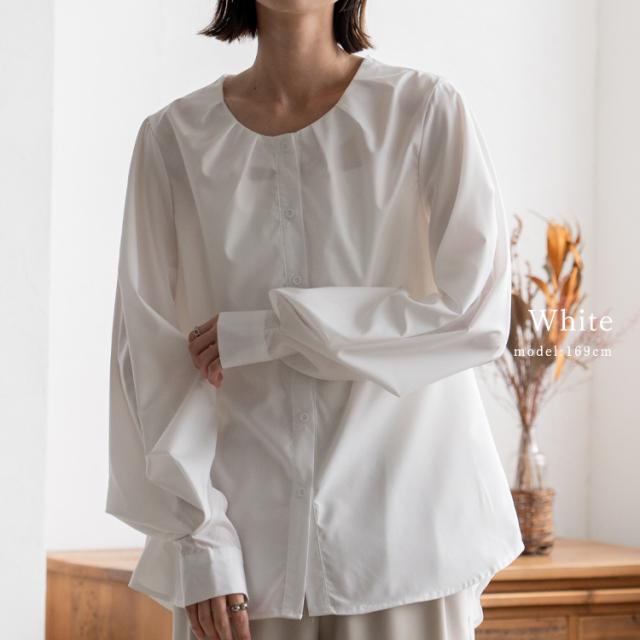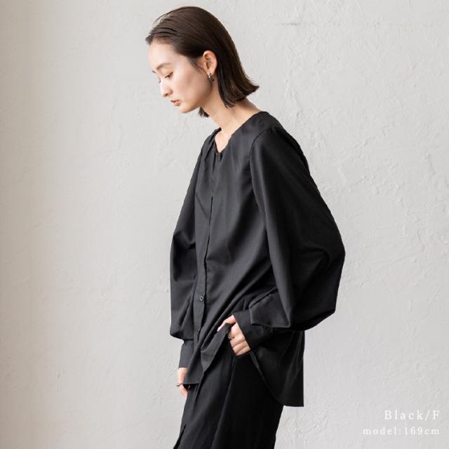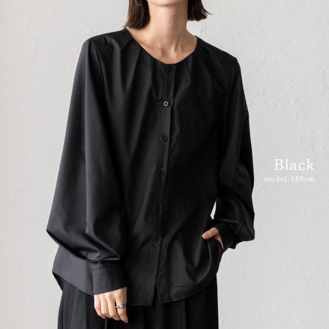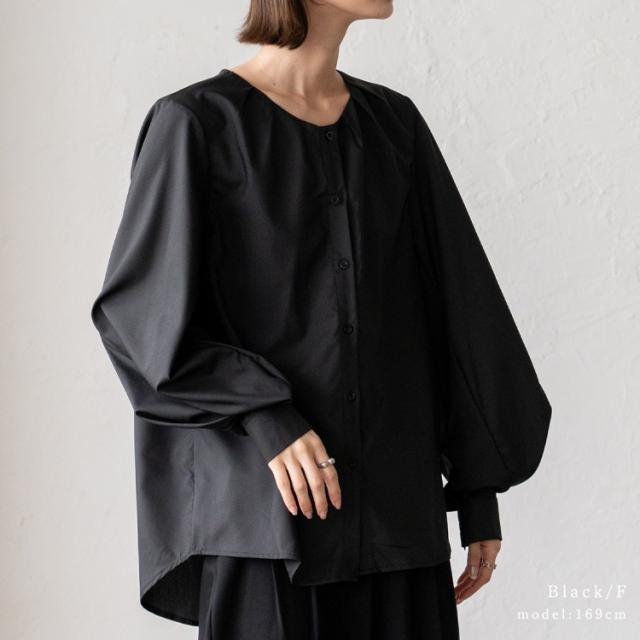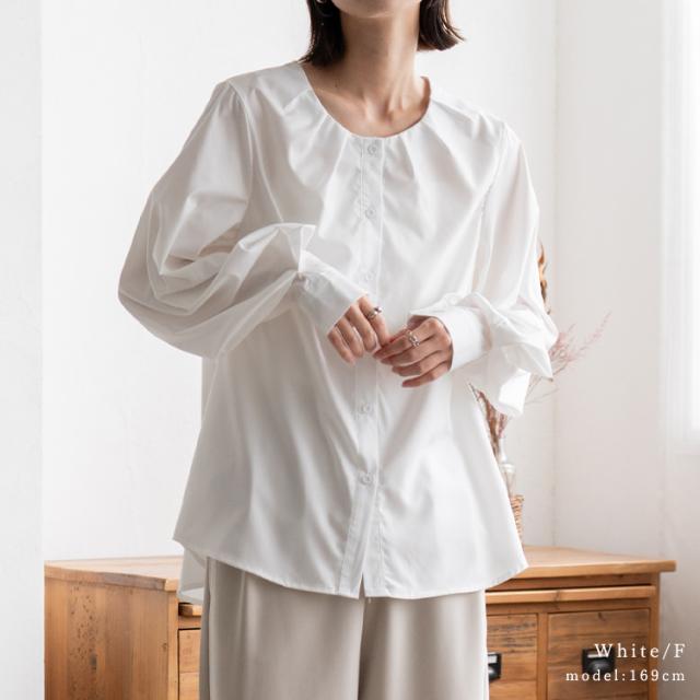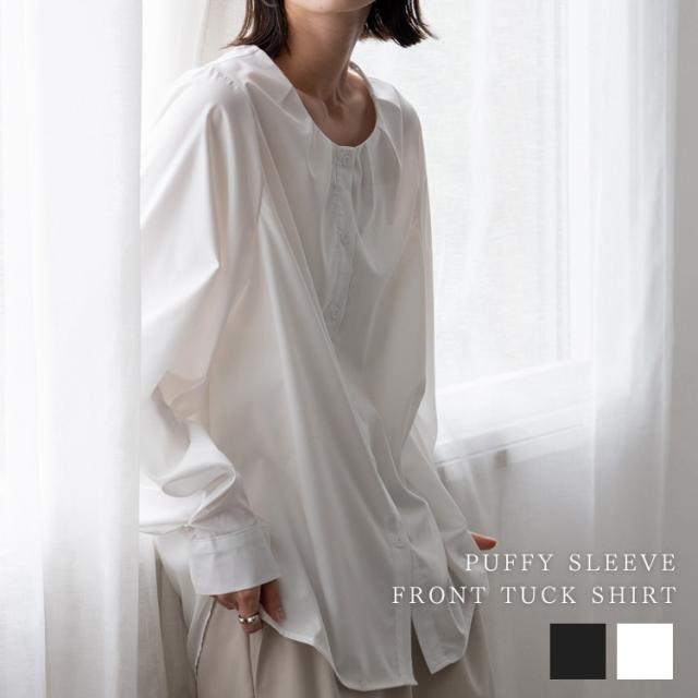 シャツ レディース ぽわん袖 長袖 オーバーサイズ タックシャツ フロントタック トップス 長袖シャツ 無地 ボタンシャツ カジュアルシャツ ブラウス 大人 ゆったり レイヤード チュニック 大きいサイズ おしゃれ カジュアル vkkc-0487 秋 冬 秋服 冬服 【メール便】