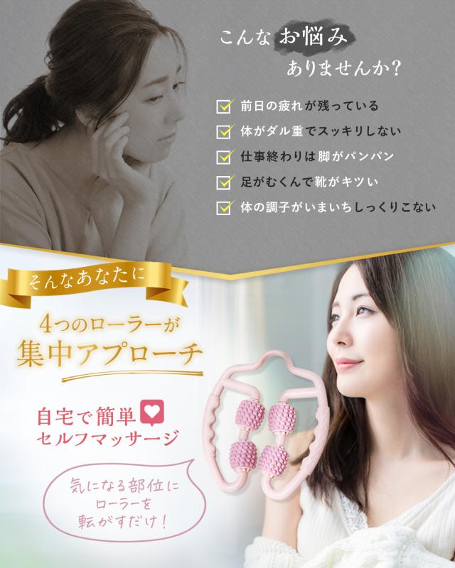 - 力を入れずにコロコロするだけでマッサージできます。 マッサージするとむくみが取れて気持ちよかったです。 自分では手が届きにくいところもマッサージができて、購入して良かったと思っています。